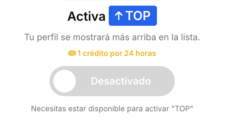 TOP moves your profile higher in the list for 24 hours.